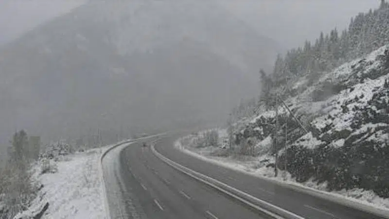 Environment Canada says 5 to 10 centimetres of snow accumulated last night, and an additional 2 to 5 centimetres are expected to come down today for the Coquihalla Highway, Allison Pass, and Pennask Summit.