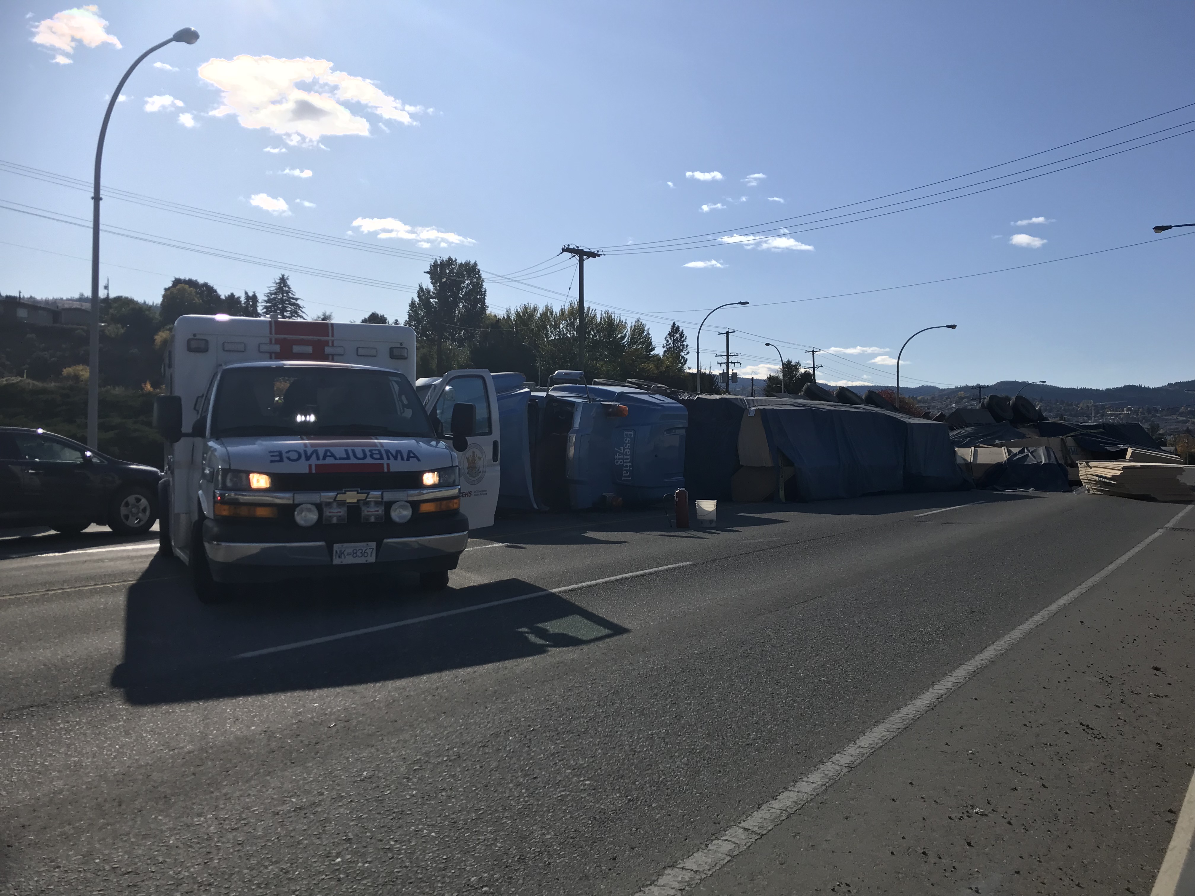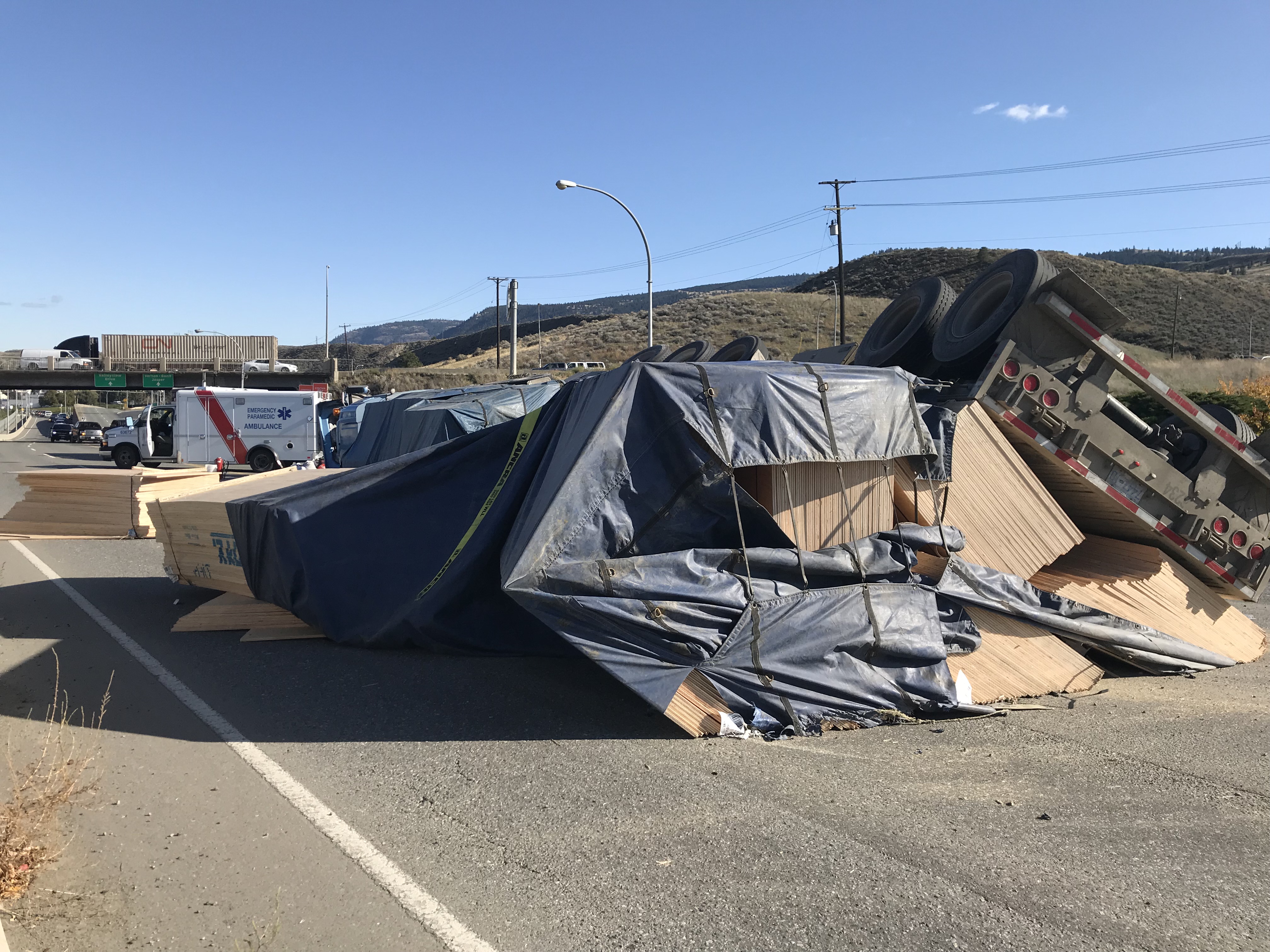KAMLOOPS — Emergency crews are on scene of an overturned lumber truck near downtown Kamloops.