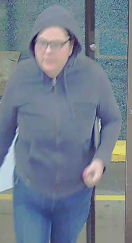 • Wearing a black toque, zip-up hoodie with a dark-coloured t-shirt underneath it