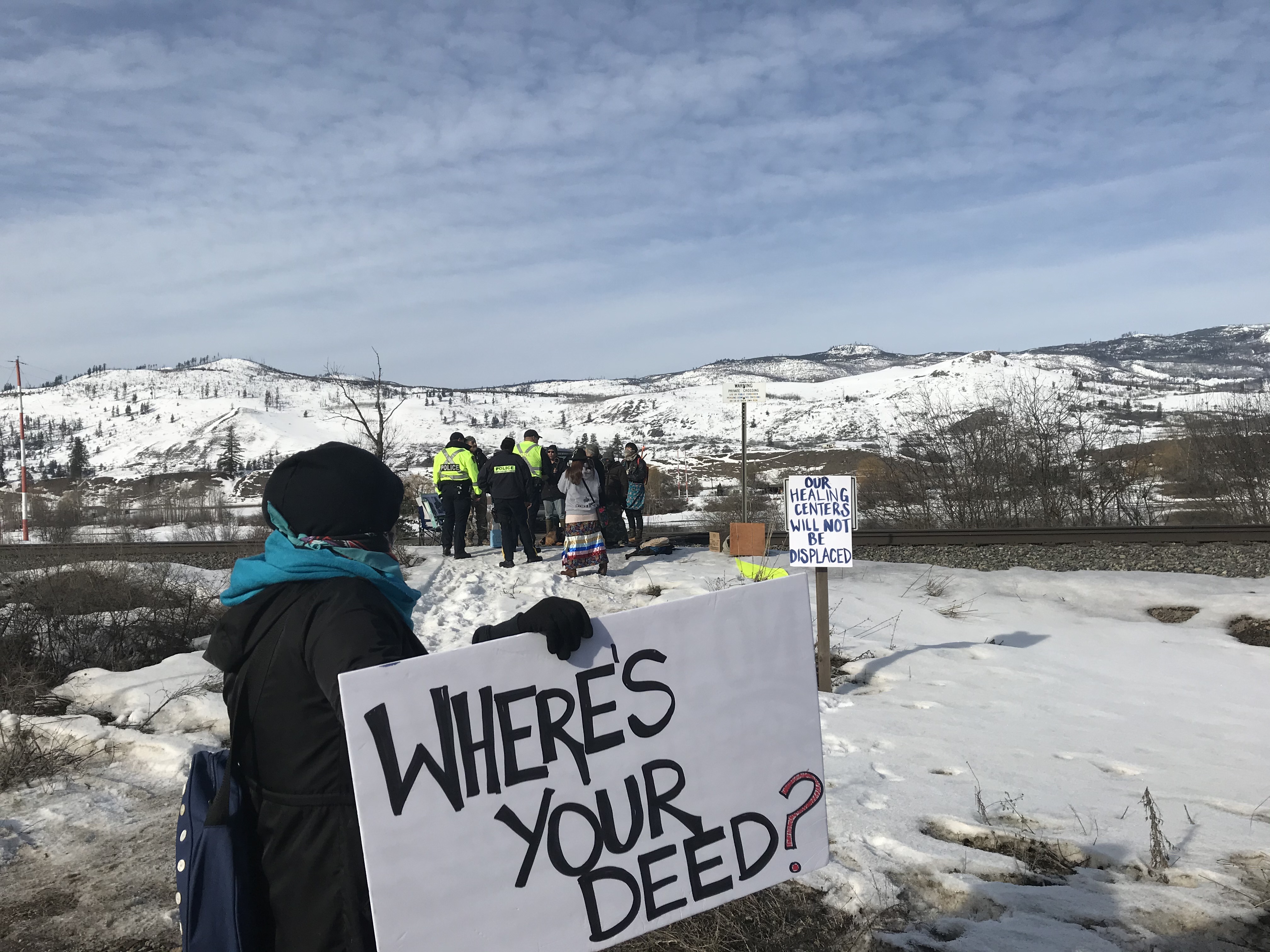 Photos posted to social media show supporters on the tracks with signs expressing solidarity with the Wet’suwet’en hereditary chiefs who oppose the Coastal GasLink project that would bring natural gas to a liquefaction facility and export terminal on the B.C. coast.