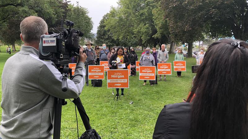 So, candidates are simply being announced in media releases and news conferences like this one. The provincial party and riding associations aren’t always in sync, and Thomas’ candidacy was inadvertently released by the BC NDP before this presser.