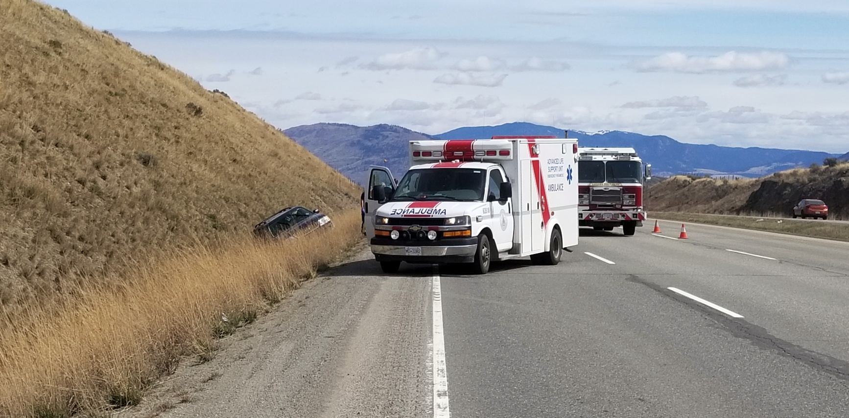 According to Cst. Crystal Evelyn, Tk’emlups Rural RCMP were called to scene just after 11:00 a.m., finding a southbound SUV that had gone off the road just past the Highway 1 exit to Cache Creek.