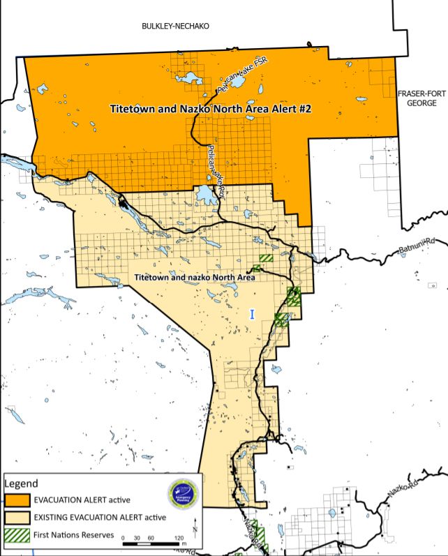 The Titetown and Nazko North alert lies just north of an area that was under a previous alert.