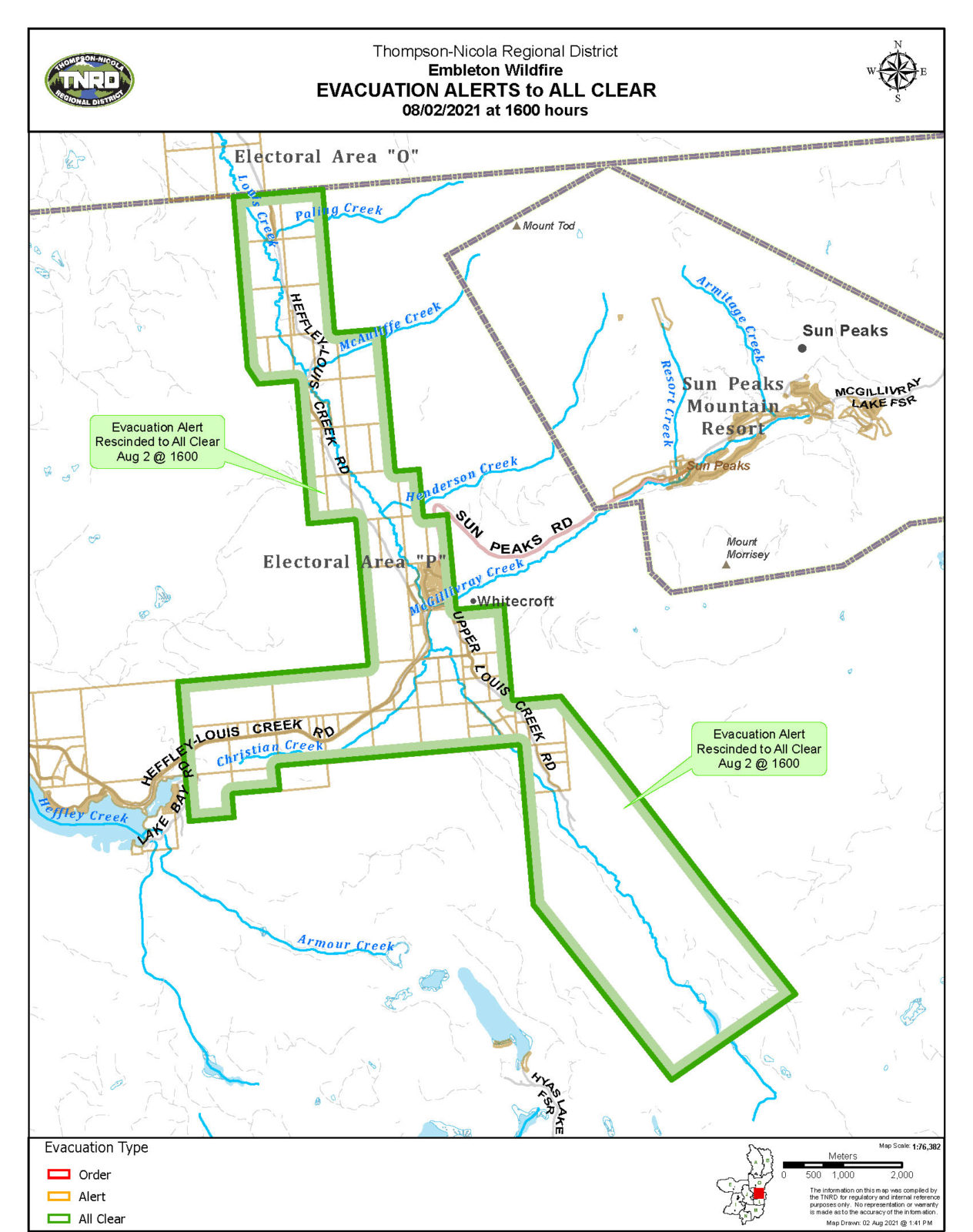 KAMLOOPS — An evacuation alert has been rescinded to give the all clear for 153 properties near Whitecroft.