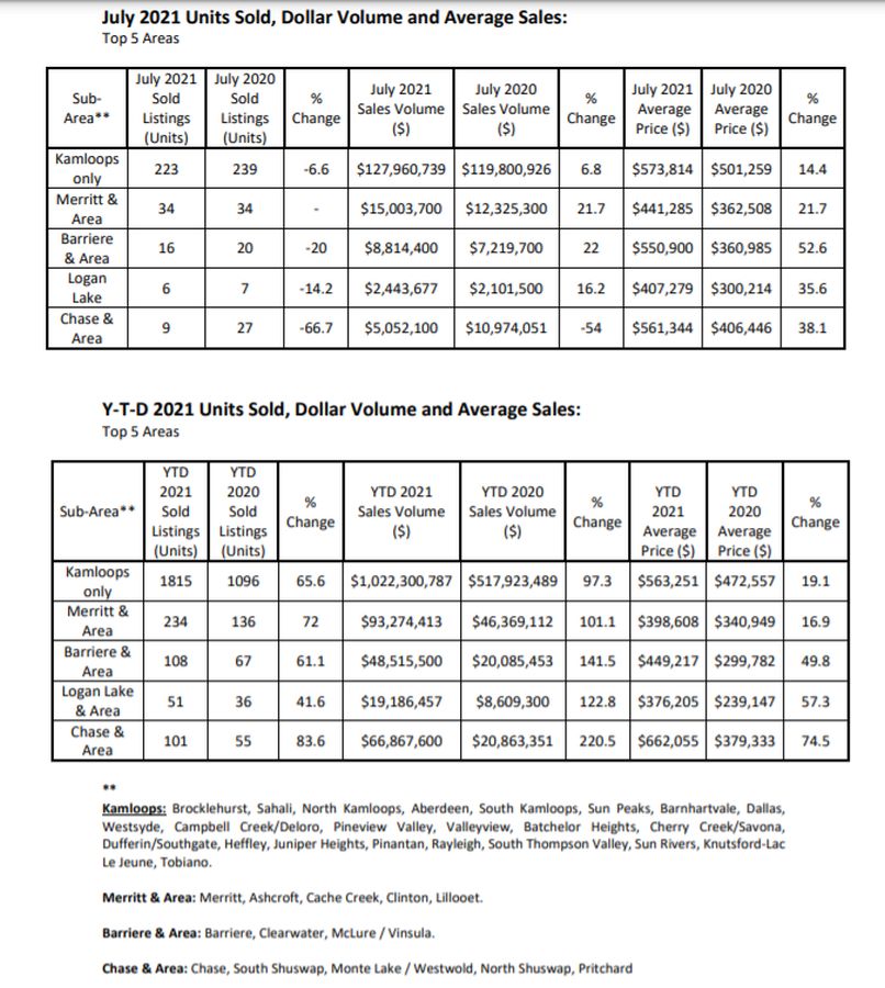 July 2021 Sales Figures – Kamloops & District Real Estate Association