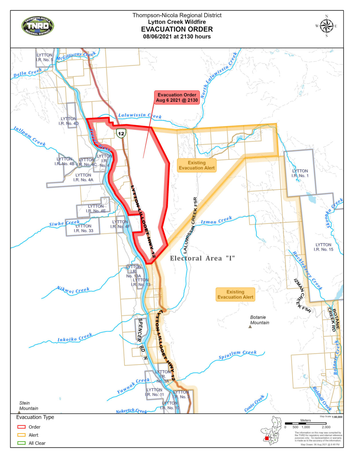 Image Credit: TNRD / Evacuation Order – Lytton Creek Wildfire – Electoral Area “I” (Blue Sky Country)