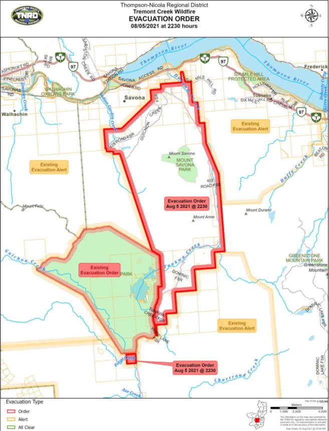 Evacuation ordered for properties south of Savona as Tremont Creek wildfire moves