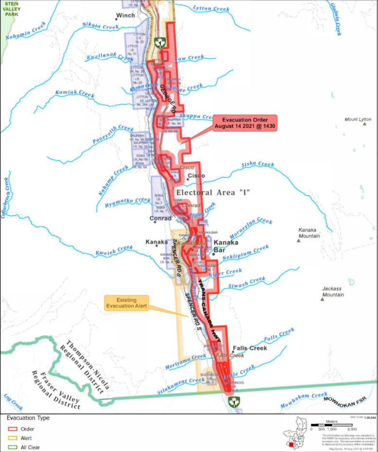 KAMLOOPS — An evacuation order was issued by the Thompson-Nicola Regional District (TNRD) Emergency Operations Centre in Kamloops Saturday (Aug. 14) afternoon.