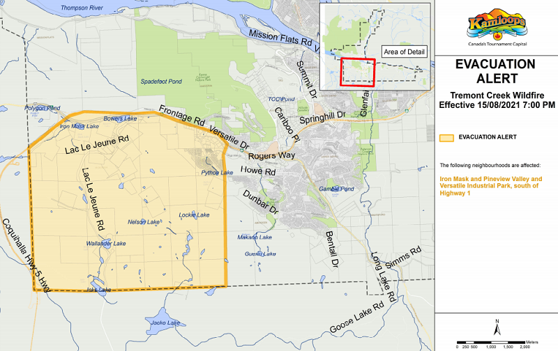 KAMLOOPS — The City of Kamloops issued an evacuation alert effective 7 p.m. Sunday (Aug. 15) evening.