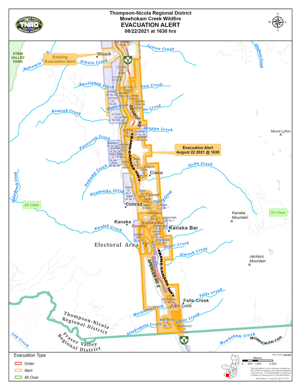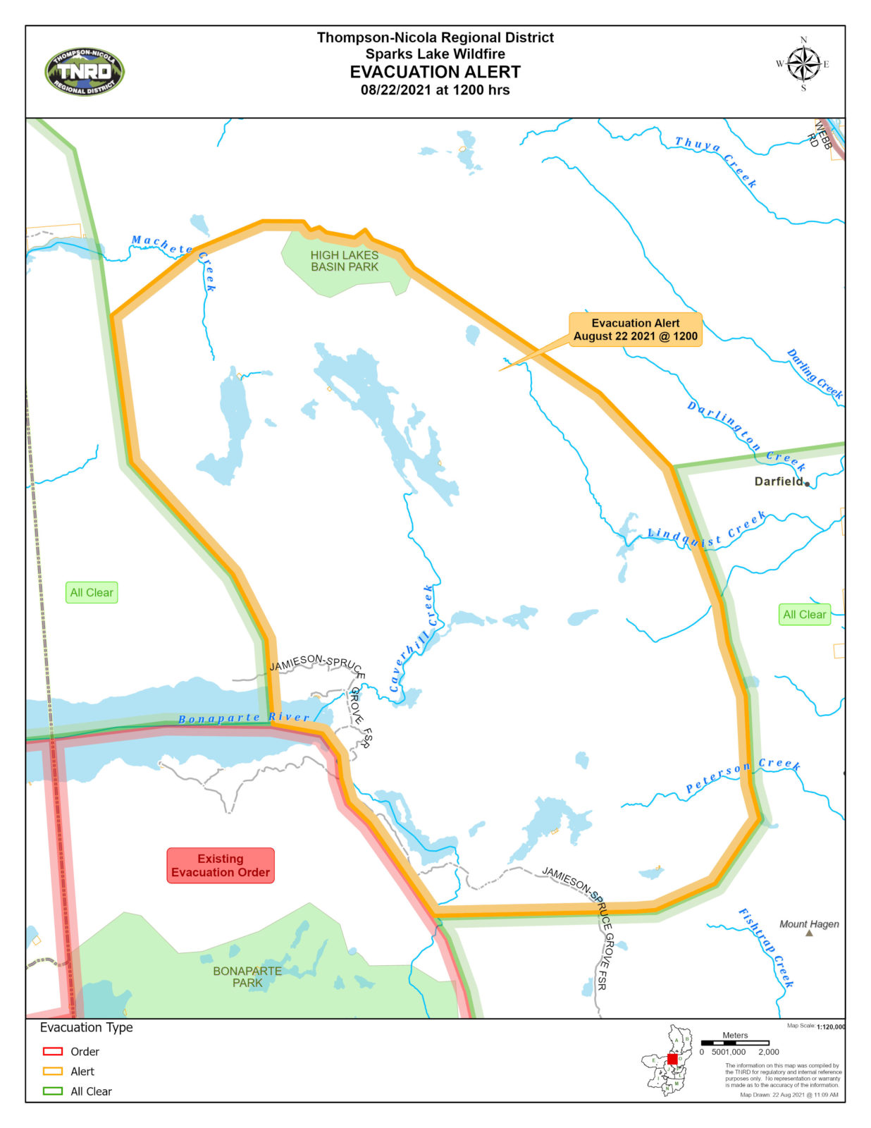 Sunday (Aug. 22) afternoon, the Thompson-Nicola Regional District (TNRD) downgraded two more evacuation orders to alerts.