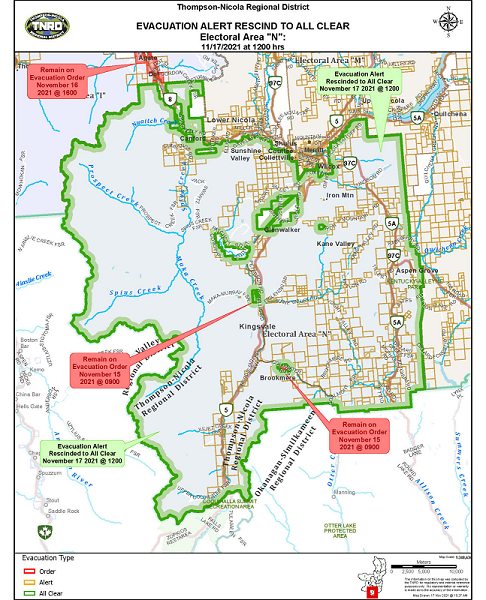 KAMLOOPS — The Thompson Nicola Regional District has rescinded evacuation alerts across three electoral areas around Merritt.