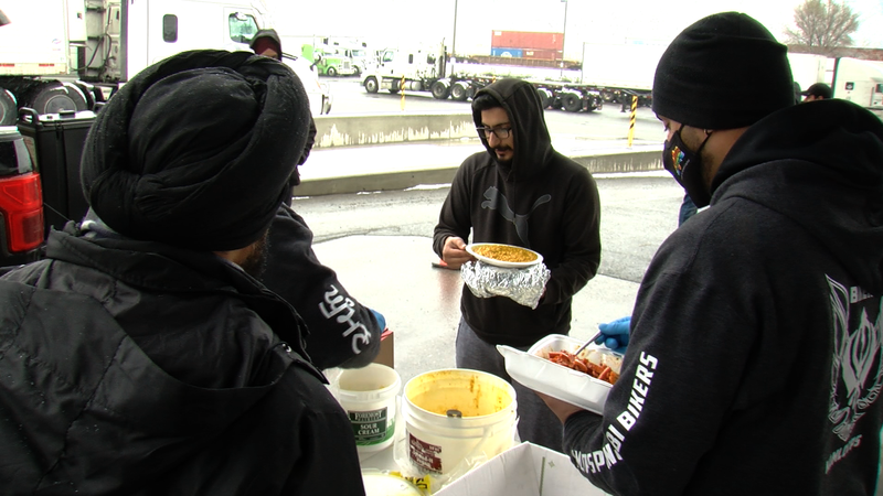 Members of the Sikh Culture Society have been serving meals twice a day since Monday to the drivers who are stranded and have nothing.