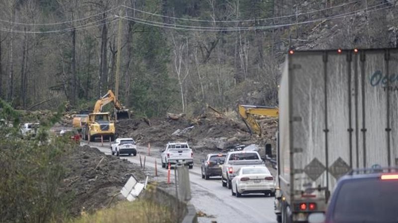 DriveBC says the road has been reopened to single-lane alternating traffic on Highway 7 near Maria Sough Bridge and crews were assessing the damage.