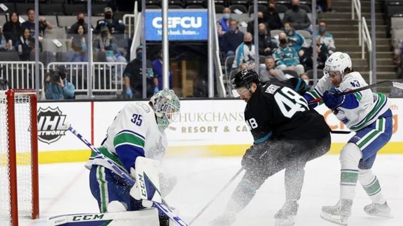 But the Sharks made one last rush and Alexander Barabanov tied it with 0.6 seconds remaining, forcing Vancouver into overtime.