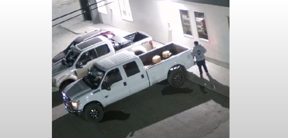 The female suspect then left with a man in a white truck.