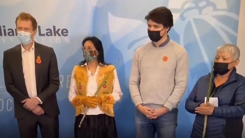 He told the ceremony that “all of Canada grieves with this community,” and he is there to “listen and learn.”