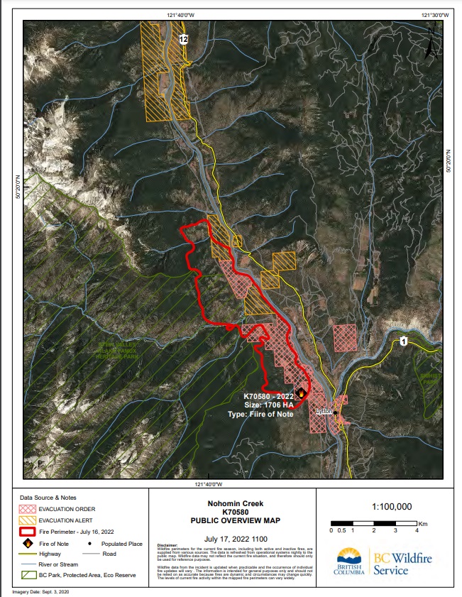 UPDATE (9:30 a.m.): B.C. Wildfire Service has posted a morning update for the Nohomin Creek wildfire near Lytton.