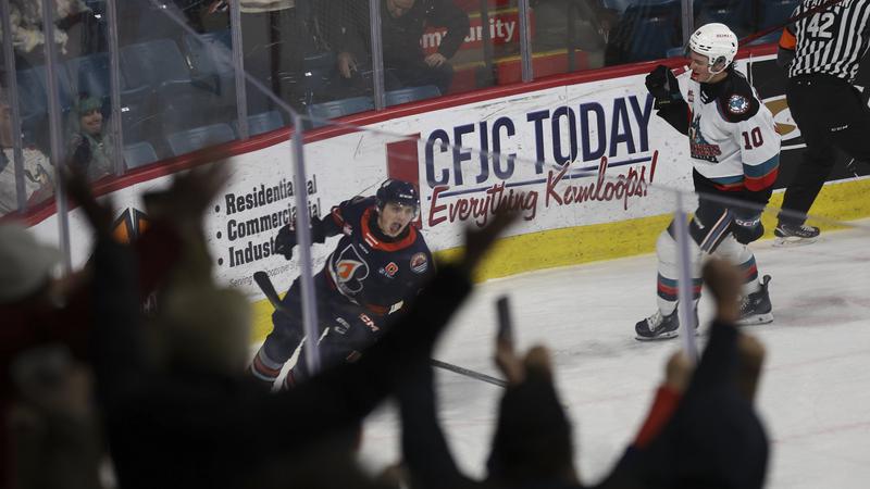 KAMLOOPS — The Kamloops Blazers erased a two goal deficit with three goals in 33 seconds, en route to a 4-3 overtime win against the Kelowna Rockets Friday (Jan. 24) night.