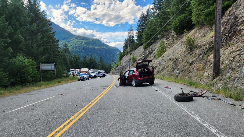 BC Highway Patrol says the crash happened on Highway 1 north of Boston Bar at around 4:00 p.m. Sunday (July 13) when a red Ford Explorer and a red Nissan Qashqai collided head on. Police add that a black Nissan Pathfinder was damaged in the aftermath.