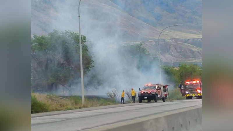 Kamloops firefighters snuff out Saturday grassfire along Trans-Canada Highway