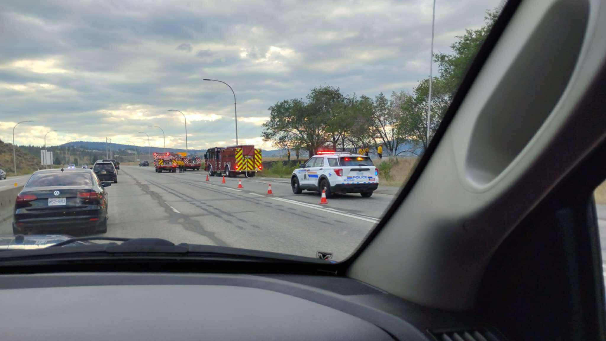 Pictures sent to CFJC Today showed an RCMP vehicle on scene to manage traffic on Highway 1 as well as a number of fire engines.