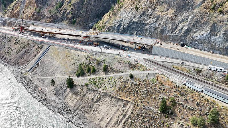 LYTTON, B.C. — There will be another two overnight closures on the Trans-Canada Highway at Tank Hill this month as crews work to build a new bridge over the existing rail line.