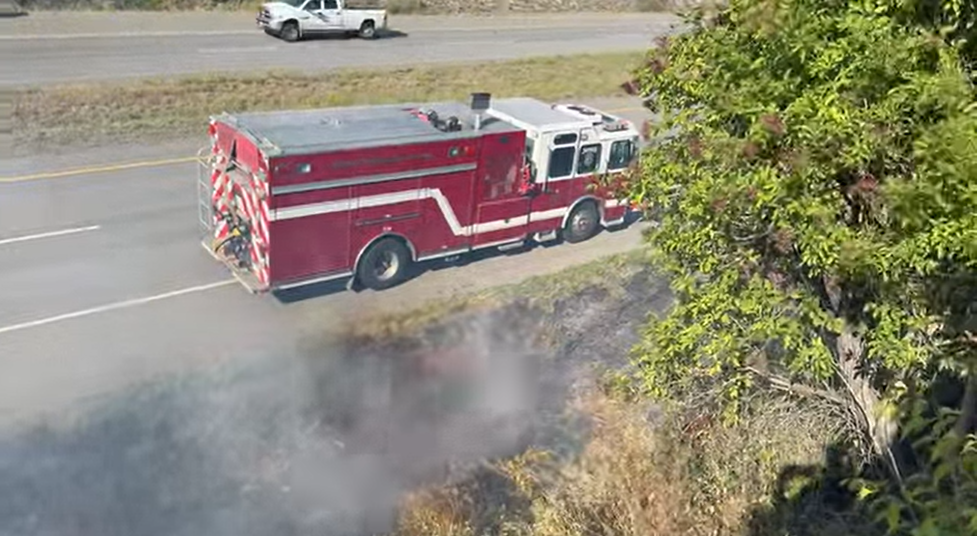Pictures shared to social media showed some white smoke rising from the fires which were burning on the shoulder of the highway. While some charred grass could be seen in pictures shared online, there were no large flames visible.