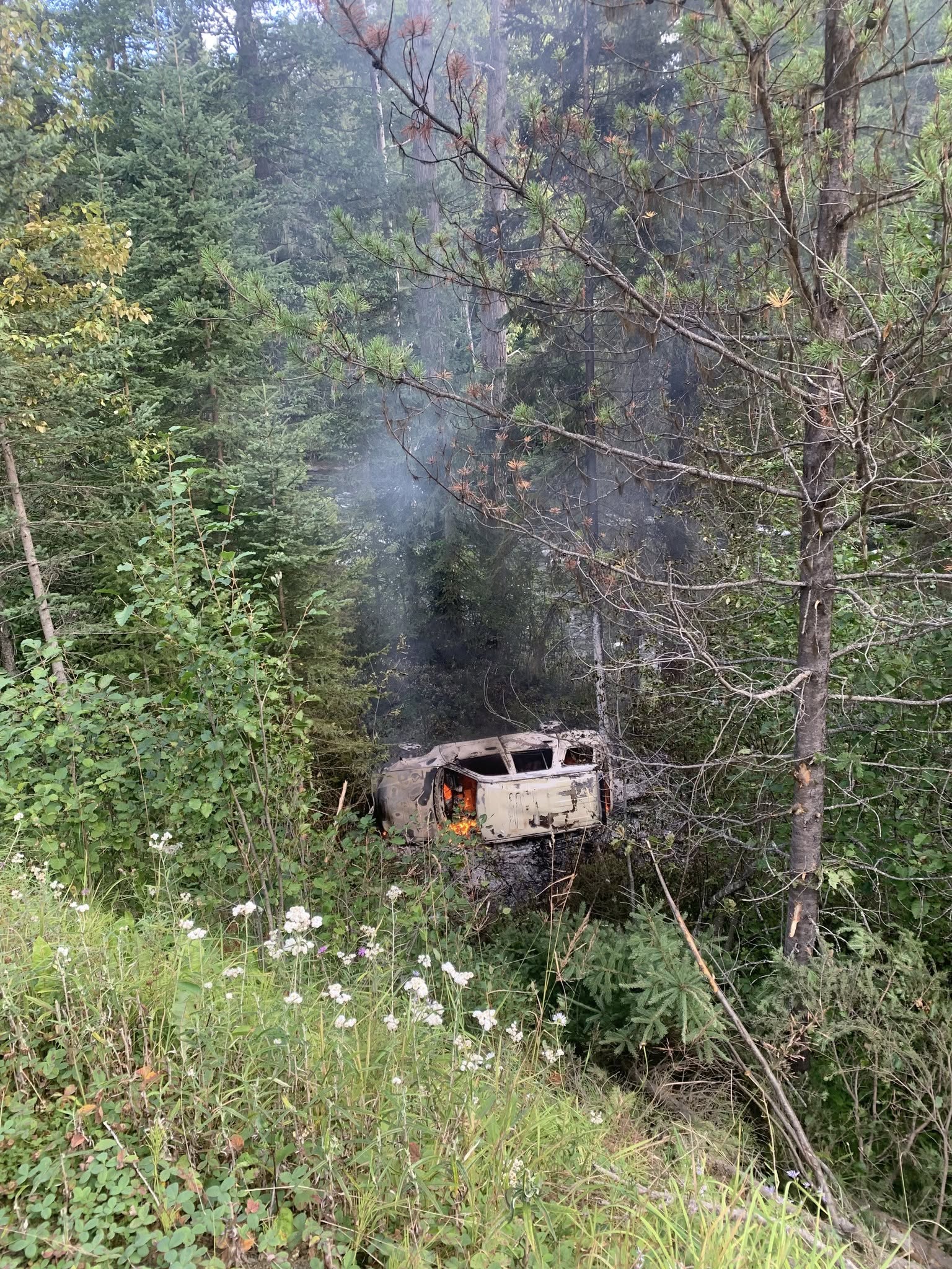 CLEARWATER, B.C. — First responders and volunteers were quick to respond to a vehicle fire in Wells Gray Provincial Park Monday (Aug. 18).