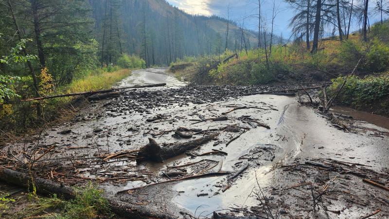 WESTWOLD, B.C. — A section of Douglas Lake Road in the Thompson-Nicola Regional District (TNRD) is still closed to all traffic, nearly 48 hours after it was impacted by a mudslide that happened Tuesday (Sept. 9) evening