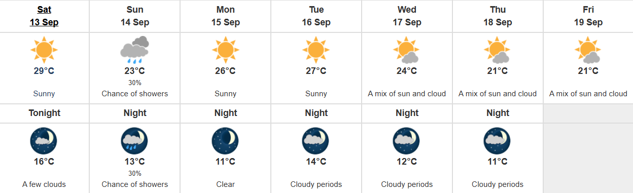 Even though Environment Canada is forecasting a high of 23 C degrees on Sunday (Sept 14), which is around normal for this time of year in Kamloops, temperatures are expected to spike into the mid 20s in the early part of next week.