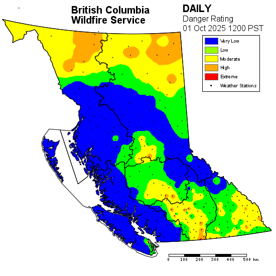 As of Wednesday, the fire danger rating in the Kamloops Fire Centre is mostly low and moderate.