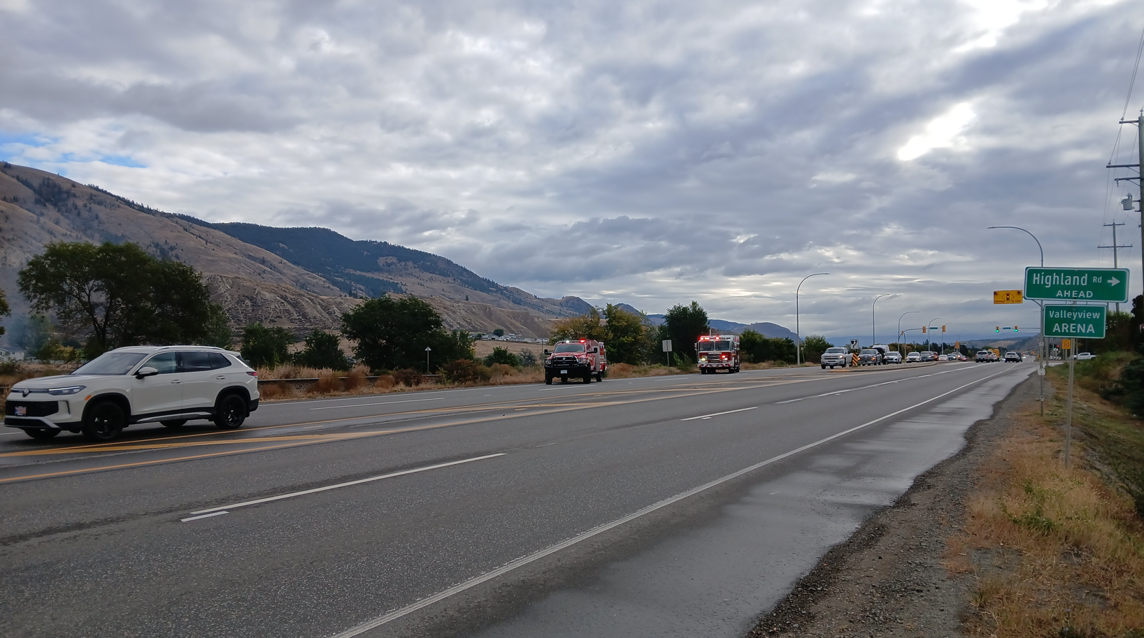 KAMLOOPS — Traffic on the Trans-Canada Highway in Valleyview was affected for a short while Saturday (Oct. 4) morning as Kamloops firefighters battled a small grassfire near the railway tracks.
