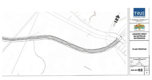 While city staff say the B.C. government approved construction on the public lands portion of the Qu’Appelle Boulevard extension – with work scheduled to start in 2026 – the Juniper West lands portion was meant to be constructed as housing development proceeded westward.