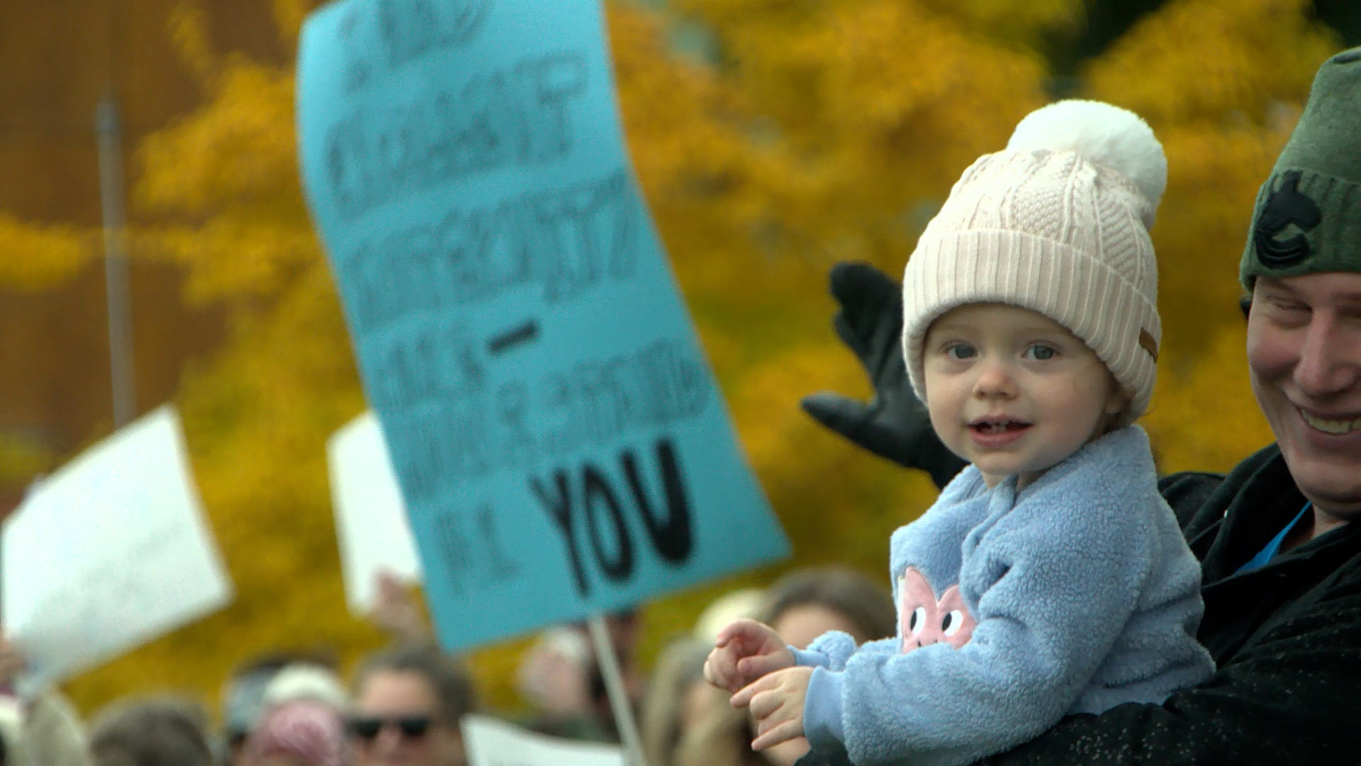 Hundreds rally in Kamloops calling for solutions to ongoing maternity crisis