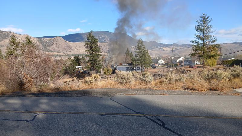 KAMLOOPS — (UPDATE 6:15 p.m.): Kamloops Fire Rescue says a trailer house in Barnhartvale that went up in flames just before noon Sunday (Nov. 2) will likely be a total loss.