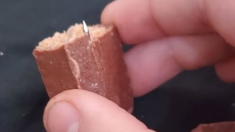 The city says a local resident discovered a nail inserted into a piece of chocolate. The resident reported the incident to Merritt RCMP.