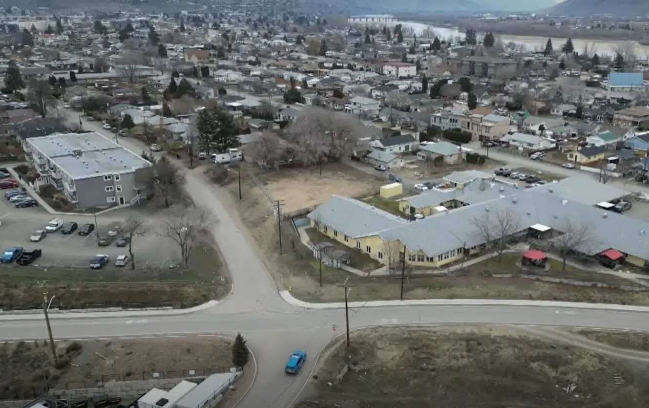 Aerial view of the property in question, adjacent to the Pine Grove Seniors Community Centre in Kamloops. (Image Credit: Global BC)