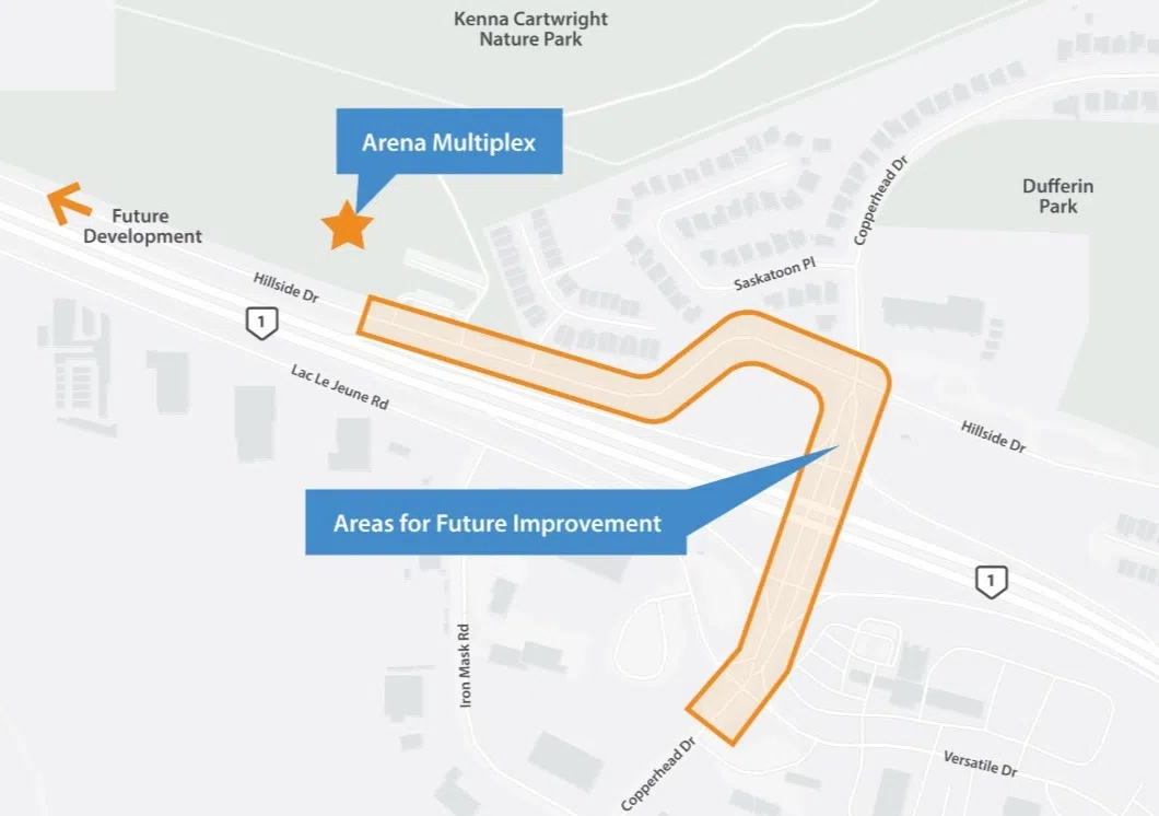 KAMLOOPS — The City of Kamloops is seeking feedback on conceptual designs for short-and-long-term improvements along the Hillside Drive and Copperhead Drive corridors to handle the anticipated influx in traffic once the new Dufferin arena multiplex opens its doors.