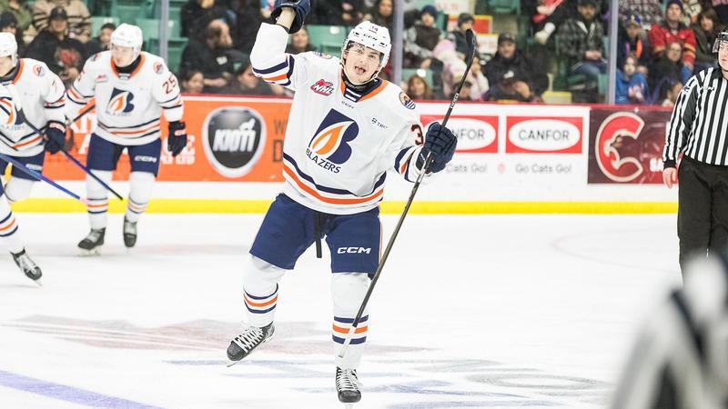 PRINCE GEORGE - The Kamloops Blazers used a four goal-second period to come away with a 5-2 road win over the Prince George Cougars Saturday (Jan. 25) night. A three-point night for Oren Shtrom agains...