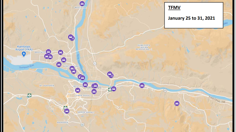 MAP: Thefts from motor vehicles — Week of January 24, 2021