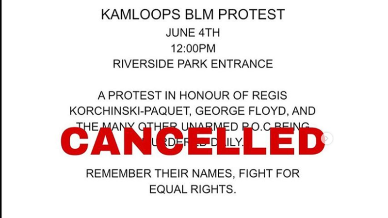 KAMLOOPS - The group organizing a protest in downtown Kamloops in support of George Floyd says the event has been cancelled.On its Instagram account, the group - now called kamloops.bipoc.support - sa...