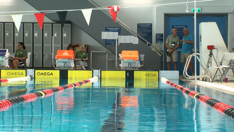 55+ Games swimmers honour "The Missing" during memorial lap