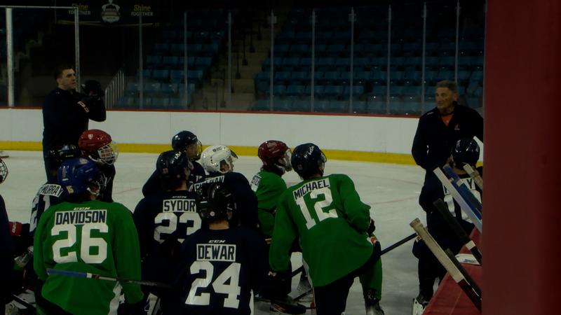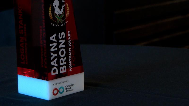 Logan Stankoven receives Dayna Brons Honourary Award from Hockey Gives Blood