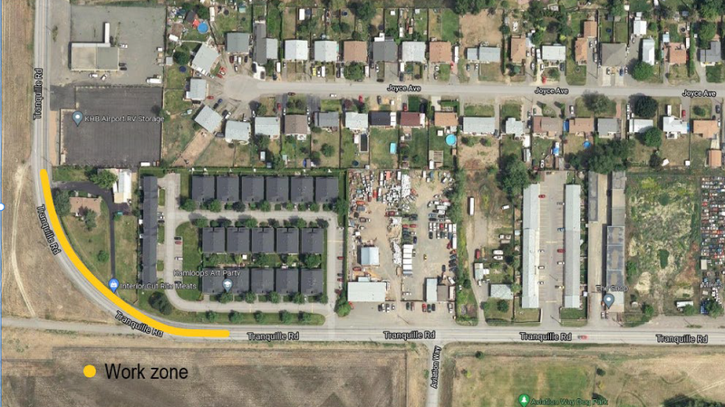 Section of Tranquille Road to be temporarily reduced to single-lane, alternating traffic starting Monday