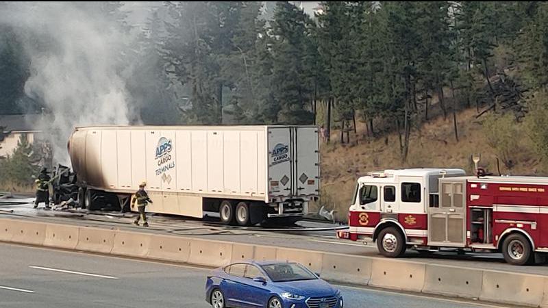 Kamloops RCMP investigating semi-trailer truck collision and fire