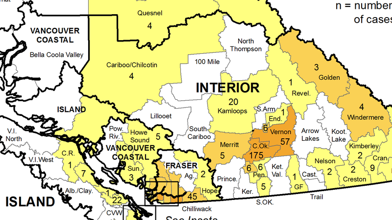 COVID-19 cases declining steadily in Kamloops; big spike in Vernon last week