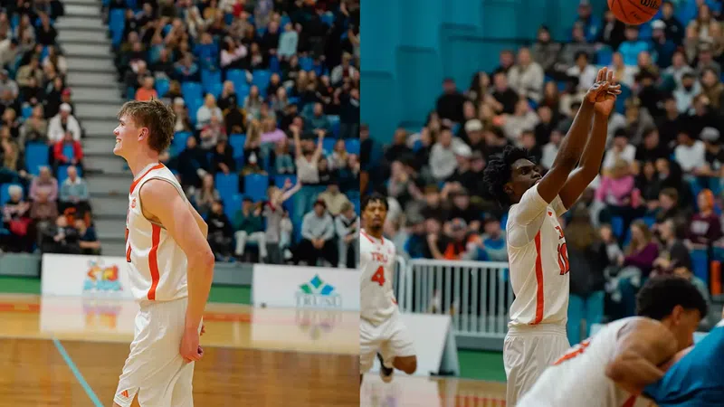 Pattison Media Feb 19, 2026 Cason Scott (left) and Jayden Stephens in action for the TRU WolfPack (Image Credit: TRU WolfPack/Contributed)
