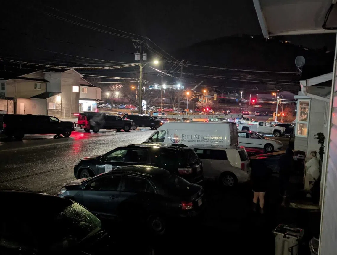 Pattison Media Dec 13, 2025 Unmarked police vehicles lined up along 12th Street in Kamloops on Dec. 12, 2025. (Image Credit: Christina Eberding/Contributed)