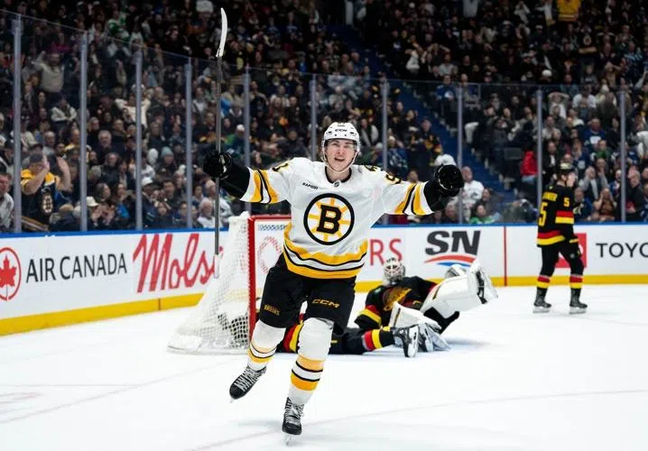 Pattison Media Feb 01, 2026 Fraser Minten celebrates his game-winning goal against the Vancouver Canucks on Jan. 3, 2026. (Image Credit: Ethan Cairns/The Canadian Press)