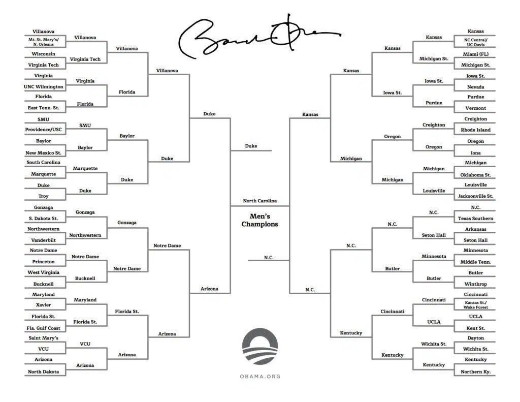 WASHINGTON - Former President Barack Obama is picking North Carolina to win the men’s NCAA Tournament over Duke. Last year, Obama had Kansas winning it all in his bracket. The Jayhawks lost to e...